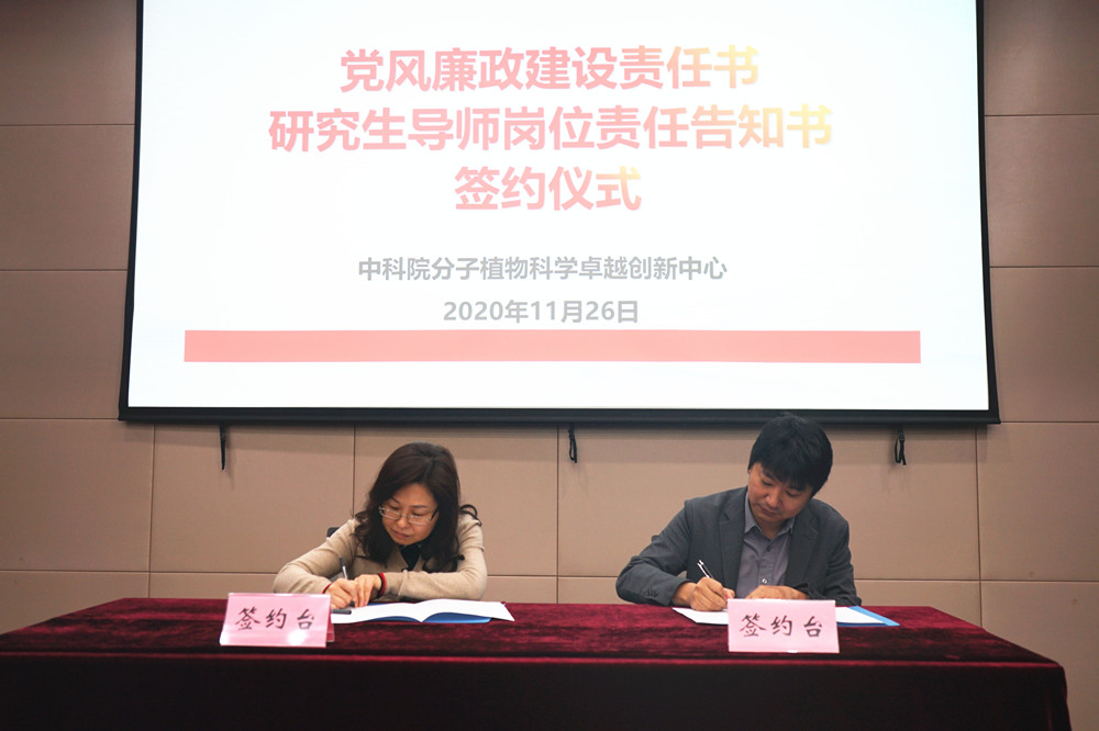 中国科学院分子植物科学卓越创新中心举行党风廉政建设责任书、研究生导师岗位责任告知书签约仪式
