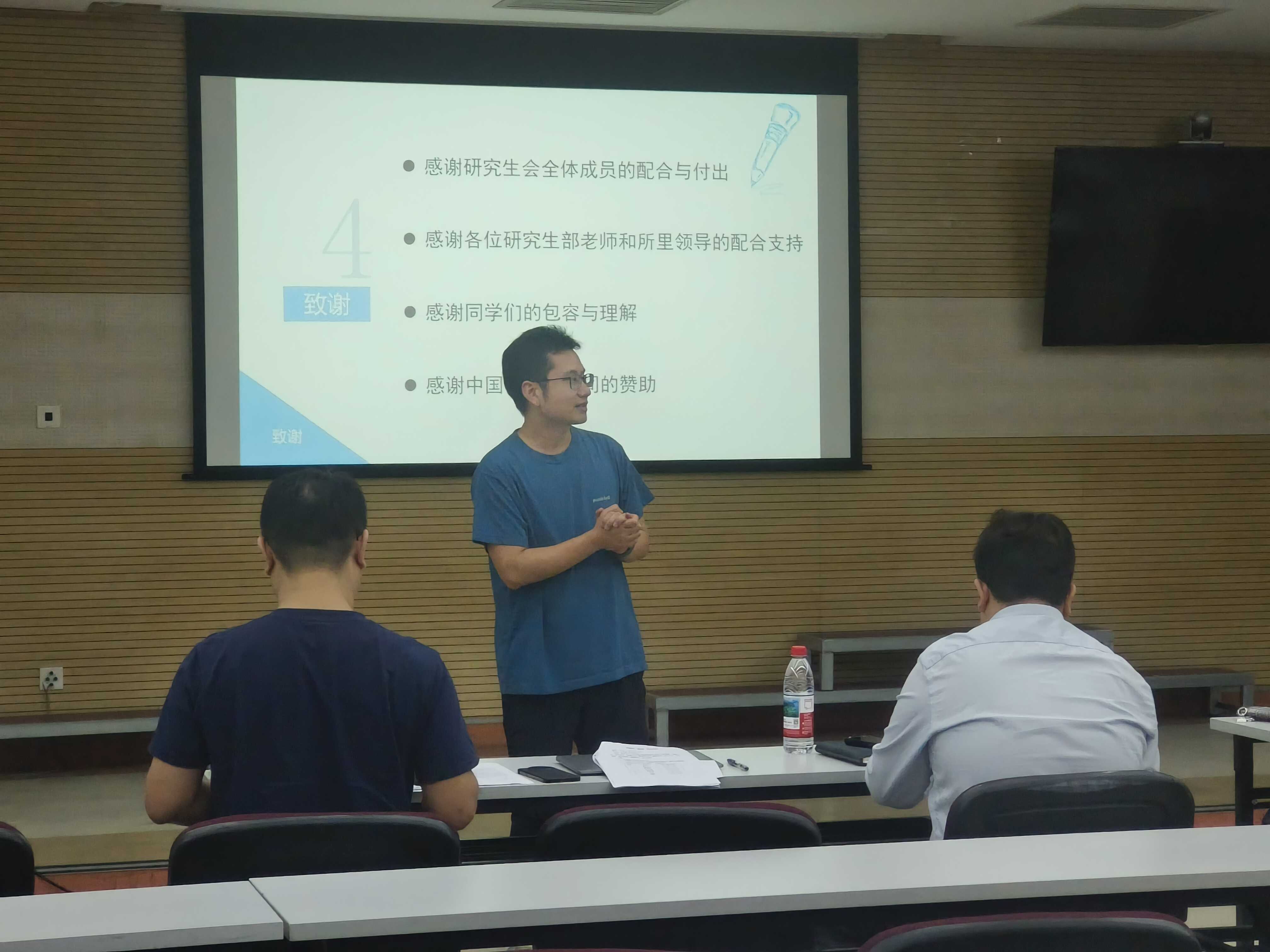 张余对研究生会在过去一年的工作给予了肯定。他表示,研究生是中心最大的群体,今天各部门都积极参会,也体现了中心对研究生群体的重视,感谢2024届研究生会过去一年付出的努力,希望新一届研究生会能够继续发挥创造力和想象力,努力做好老师与同学们之间沟通的桥梁。出席会议的各位老师也各自提出了对研究会的建议和指导,并对学生会的未来发展寄予了厚望,希望研究生会能薪火相传、开拓创新。