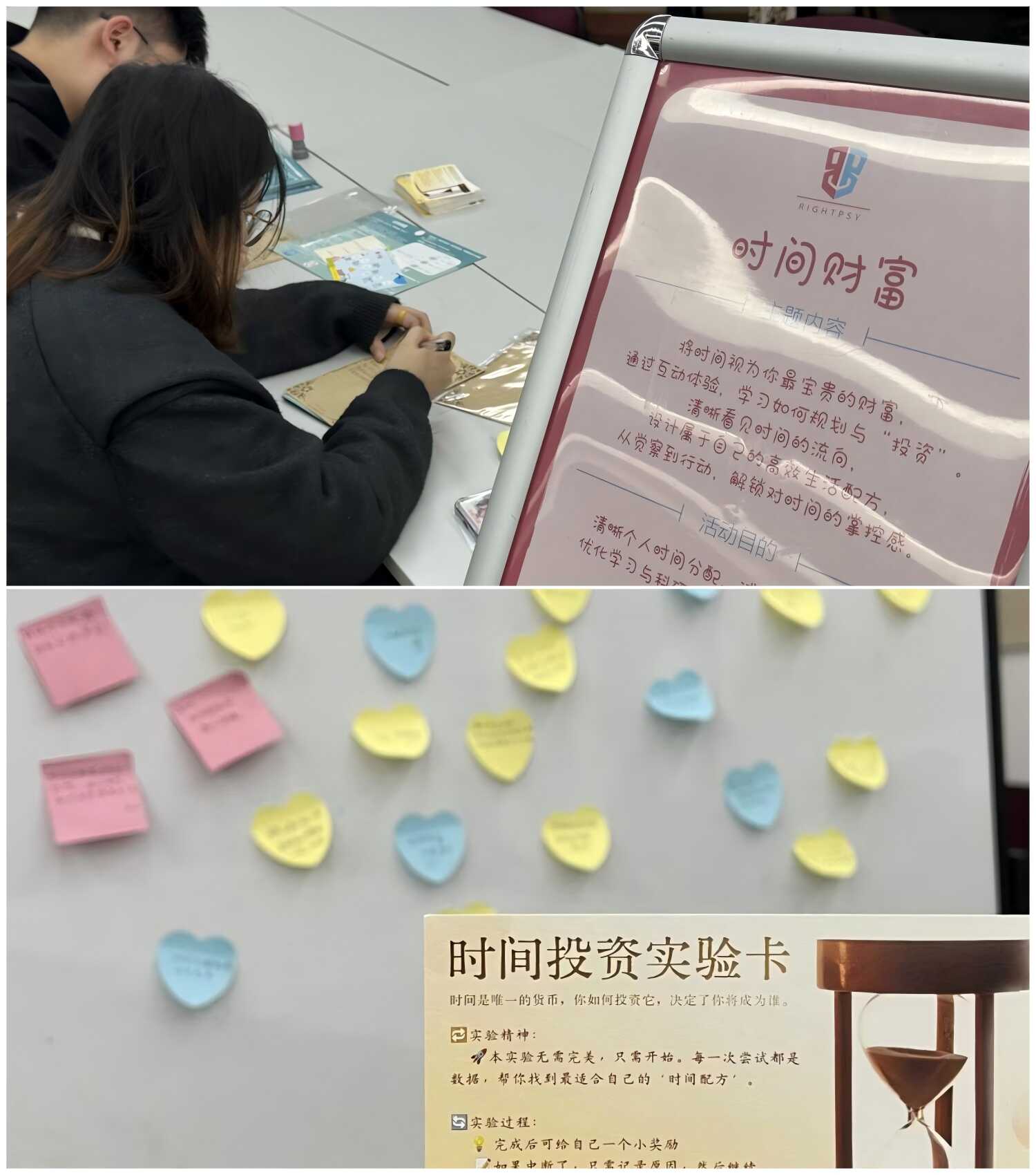 本次活动新增“时间财富”板块,引导同学们通过可视化图表,梳理过去的时间分配、检视近期的时间使用,并为接下来的目标制定切实计划。很多同学表示,这个练习帮助他们更清晰地感知到时间的价值,也开始思考如何更明智地“投资”自己的每一天。