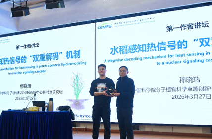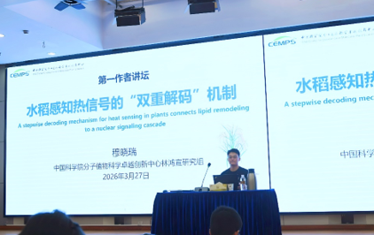 2026年3月27日下午,第177期“第一作者讲坛”在中国科学院上海教育基地报告厅顺利举办。中国科学院分子植物科学卓越创新中心林鸿宣研究组博士研究生穆晓瑞受邀参加本次讲坛并作了题为《水稻感知热信号的“双重解码”机制》的精彩报告,林鸿宣研究员作为特邀嘉宾出席并点评。