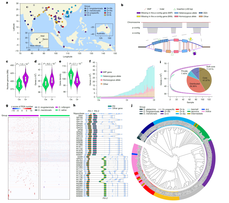 亚洲栽培稻(Oryza sativa L.)作为全球数十亿人的主粮,其驯化历史可追溯至一万年前的普通野生稻(Oryza rufipogon)。 面对全球人口增长和气候变化加剧的双重压力,如何将野生稻历经万年锤炼的“生存智慧”注入现代品种,培育出兼具高产潜力与抗病抗逆特性的"超级水稻"已成为破解粮食安全困局的重大课题。然而,传统依赖单一参考基因组的研究模式,如同“以管窥天”,仅能捕捉水稻遗传多样性的冰山一角。因此,急需构建一个高质量、大规模的野生稻泛基因组,深度解析其广泛的多样性,全面挖掘其耐逆、抗病等优良性状的遗传变异宝库。