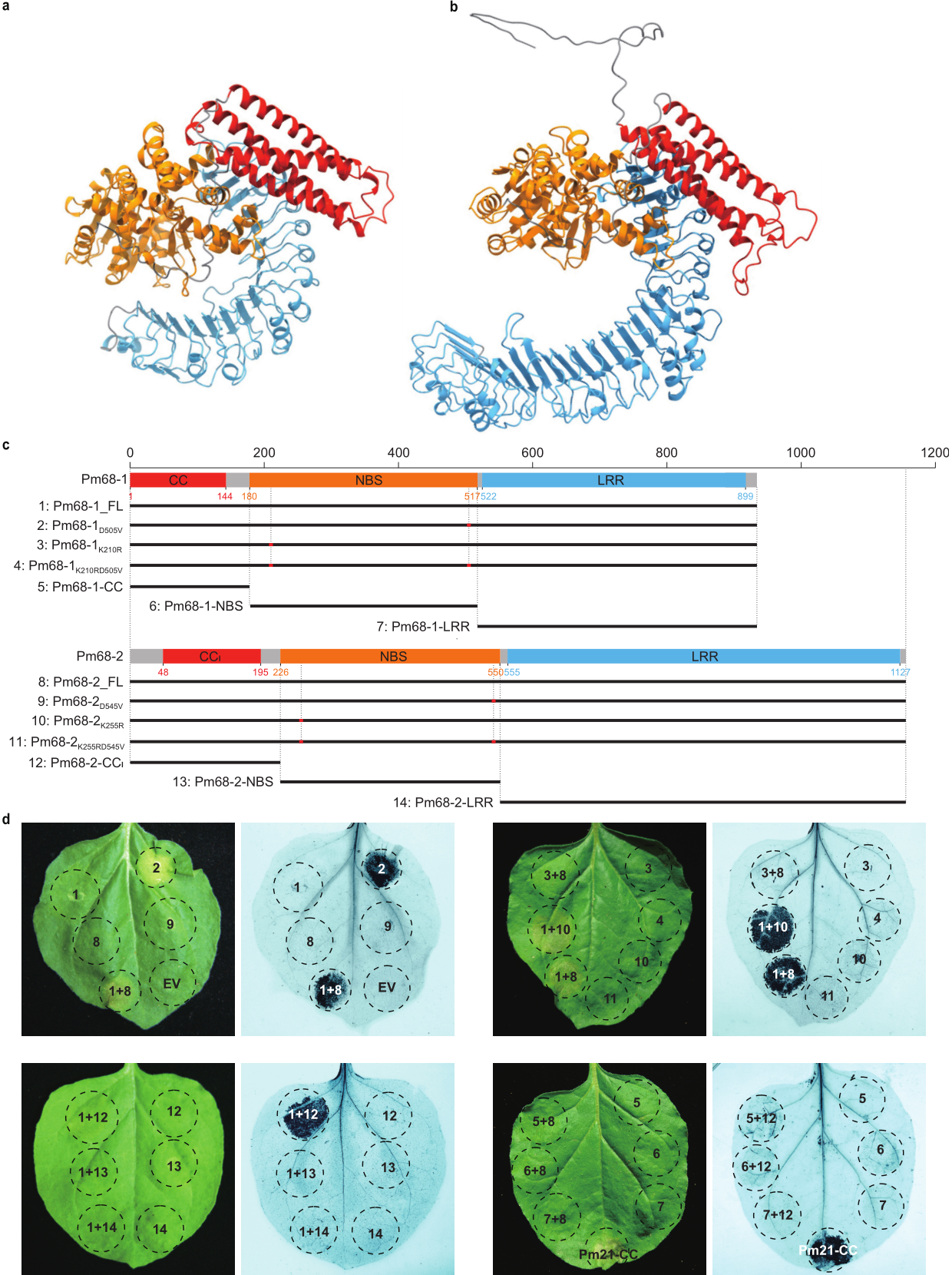 图2 Pm68 NLR pair的蛋白预测结构及功能研究