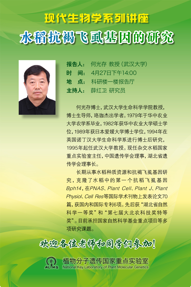 现代生物学系列讲座(4月27日)--水稻抗褐飞虱基因的研究