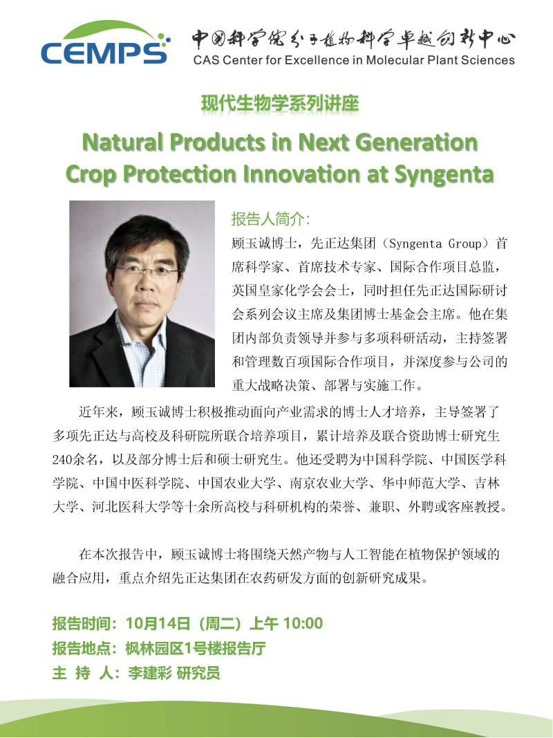 现代生物学系列讲座--Natural Products in Next Generation Crop Protection Innovation at Syngenta