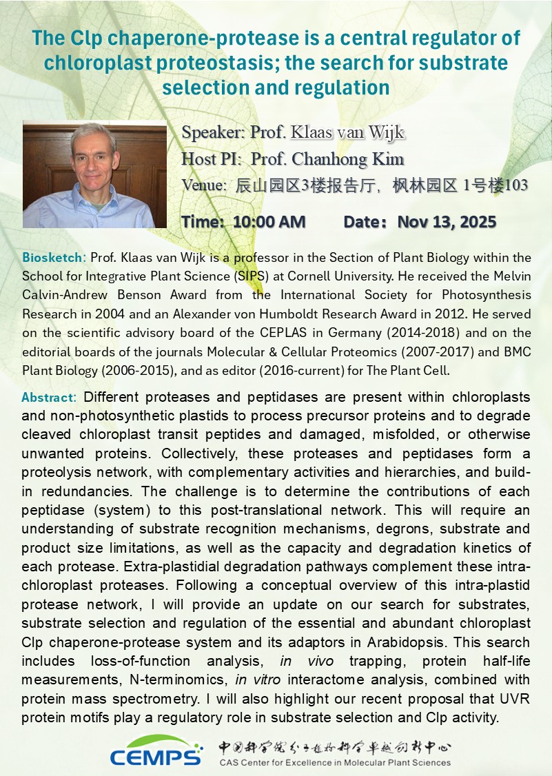现代生物学系列讲座--The Clp chaperone-protease is a central regulator of chloroplast proteostasis; the search for substrate selection and regulation