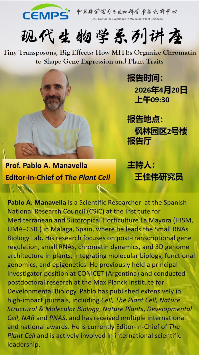 现代生物学系列讲座--Tiny Transposons, Big Effects: How MITEs Organize Chromatin to Shape Gene Expression and Plant Traits