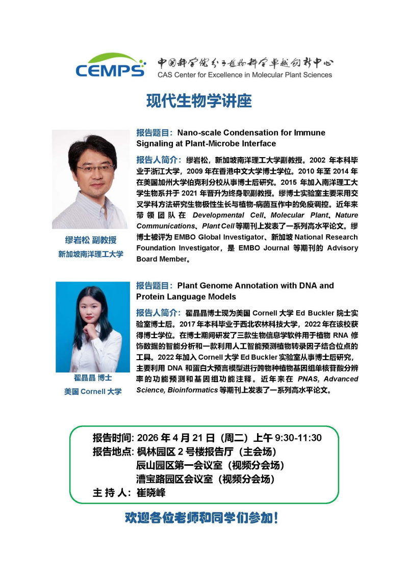 现代生物学系列讲座--Nano-scale Condensation for Immune Signaling at Plant-Microbe Interface