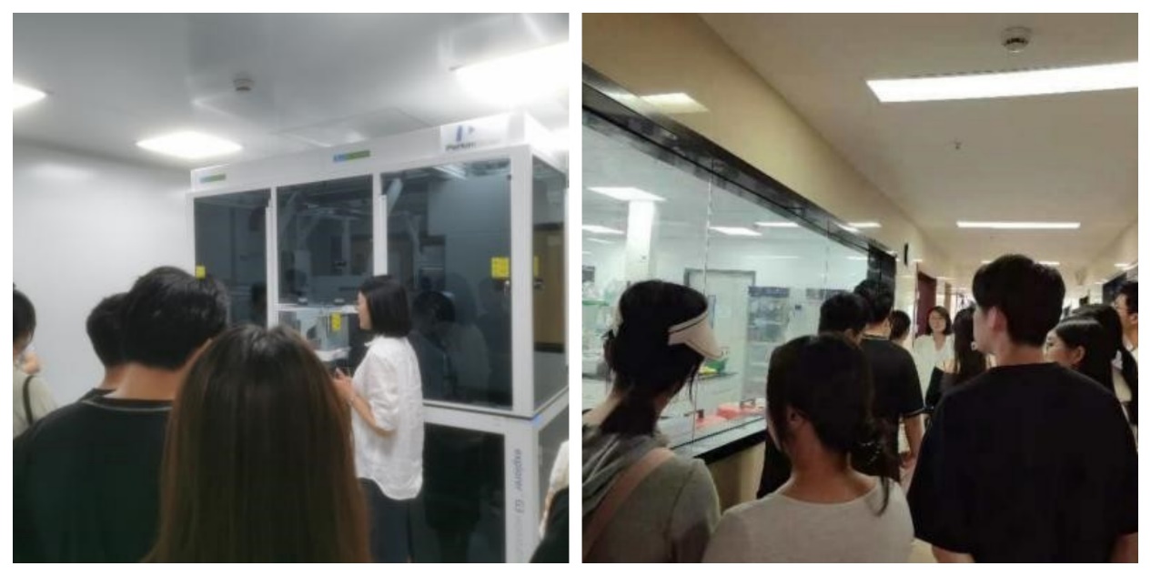 参观结束后,大家又前往有机所实验室进行观摩。实验室科研人员向党员们介绍了实验室的仪器设备和使用功能,并与研究生们就科研生活进行了亲切的交流。