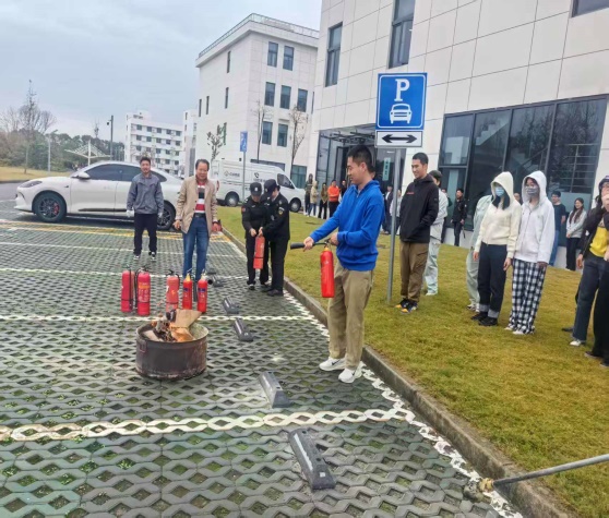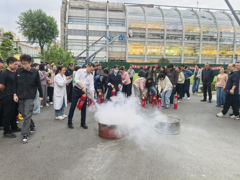 随着烟雾升起,1号楼内响起火警警报及消防广播,园区消防值班室接到报警电话,保安队员迅速前往确认火情,引导楼内人员迅速疏散。义务消防员携带灭火器材赶往现场迅速控制火情。疏散完毕后,参演人员开展了灭火器操作演练。在现场工作人员的指导下,大家依次有序体验使用灭火器灭火操作。11月7日,辰山园区也开展了消防疏散及灭火演练。